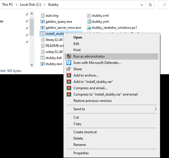 Step 2: Right-click install_stubby.bat → Run as administrator